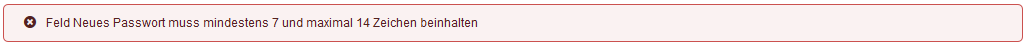 Entspricht das eingegebene Passwort nicht den Passwortvorgaben, wird eine Fehlermeldung wie diese angezeigt: