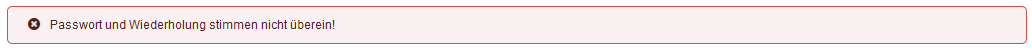 Sollten sich das eingegebene Passwort und seine Wiederholung unterscheiden, erhalten Sie ebenfalls eine entsprechende Fehlermeldung: